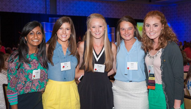 Whether a member chooses to serve as a chapter officer, or represent AOII as a member of other campus or community organizations, there are numerous opportunities to develop leadership skills as a member of AOII.